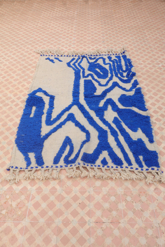 Tapis Berbère Azilal Motifs Abstraits Bleu Klein- 146 x 96 cm