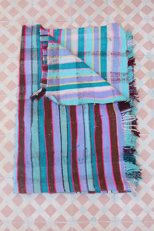 Couverture Haïk Berbère Vintage Colorée Rayée Lilas Bleu Rose