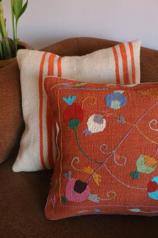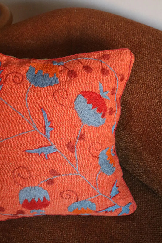 Coussin Suzani Fait-Main Orange Motifs Brodés Colorés