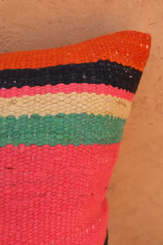 Coussin Haïk en Laine Rayé Multicolore Fait-Main ELA -