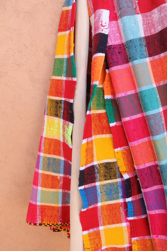 Couverture Haïk Berbère à Carreaux Multicolores et Fluo