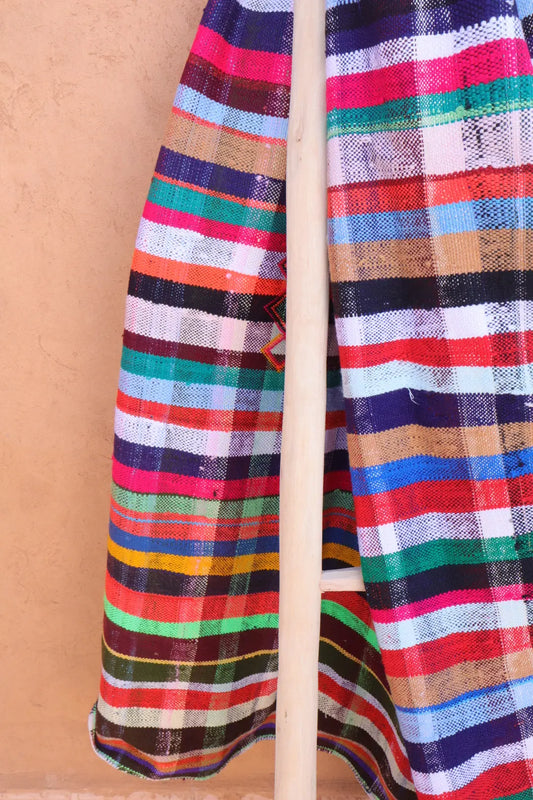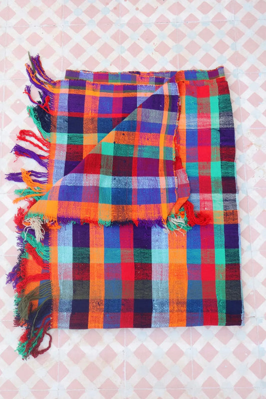 Couverture Haïk Berbère Vintage à Carreaux Multicolore et Fluo