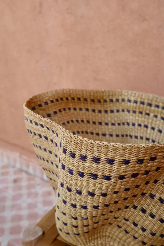 Panier Bolga Décoratif - Suspension Artisanale Colorée Naturel Pois