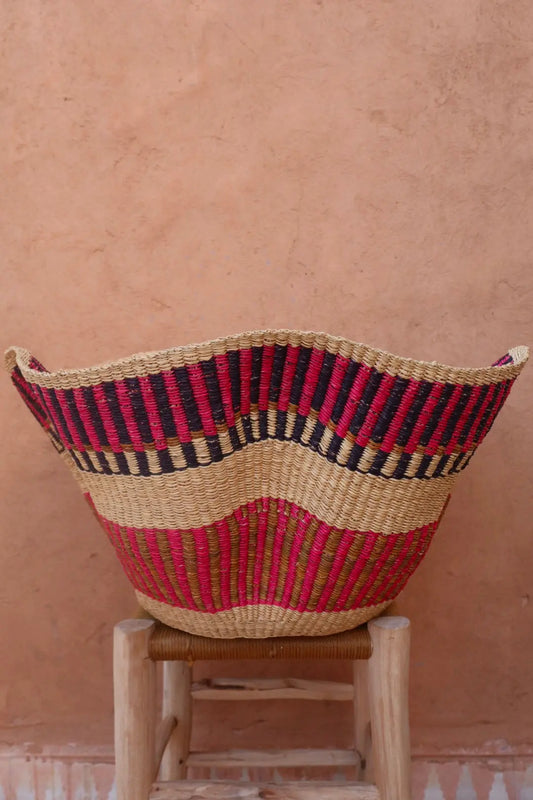 Panier Bolga Décoratif - Suspension Artisanale Colorée Fushia