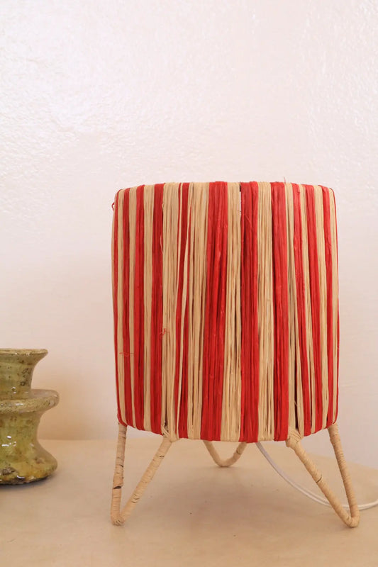 Lampe à poser en Raphia Rayée Rouge et Naturel - « SASKIA »