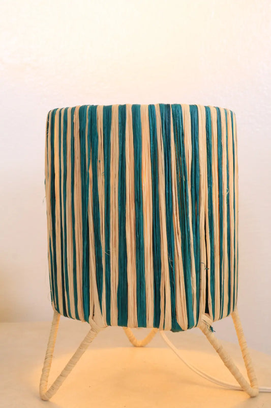 Lampe à poser en Raphia Rayée Vert Sapin et Naturel - « SASKIA »