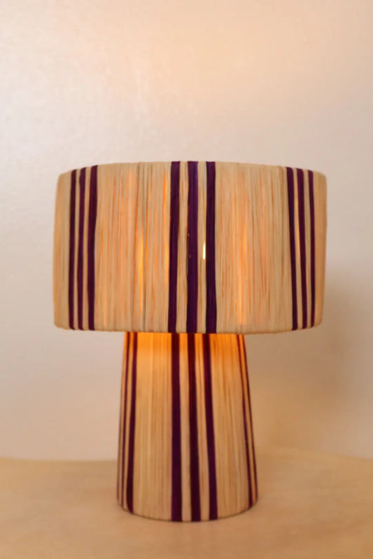 Lampe à poser en Raphia Rayée Violet et Naturel - « LUZ »