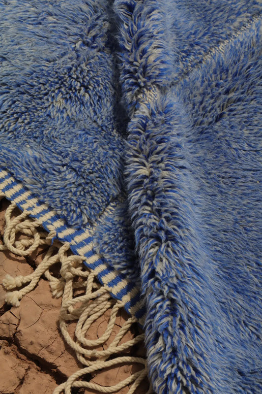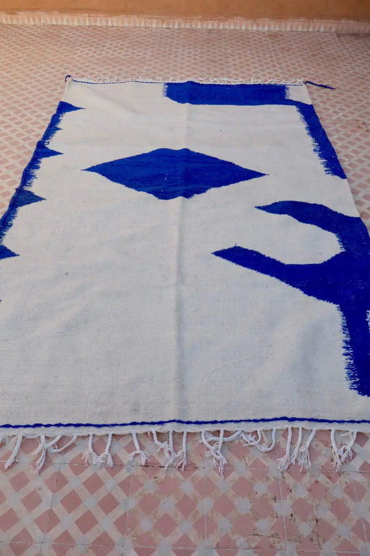 Tapis Berbère Mrirt Bleu Klein et Blanc -