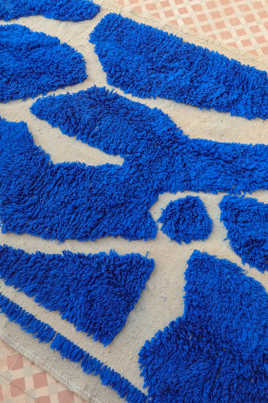 Tapis Berbère Béni Ouarain Moderne Bleu Klein À Reliefs - Modèle Signature 02