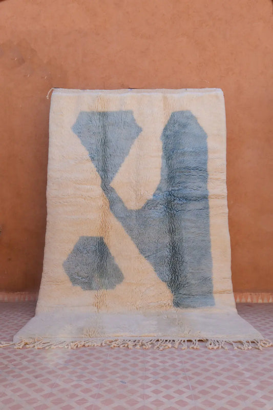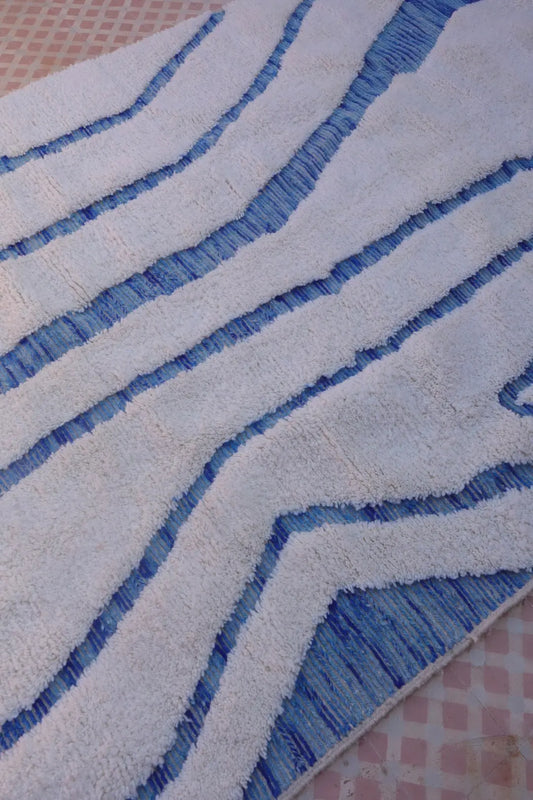 Tapis Berbère Mrirt Bleu et Blanc- 315 x 215 cm