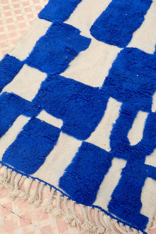 Tapis Berbère à Damiers Bleu Majorelle Béni Ouarain- 247 x 154 cm