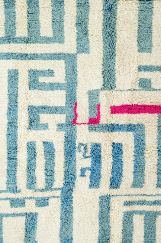 Tapis Berbère Béni Ouarain Moderne Bleu Ciel Blanc - 315 x 207 cm