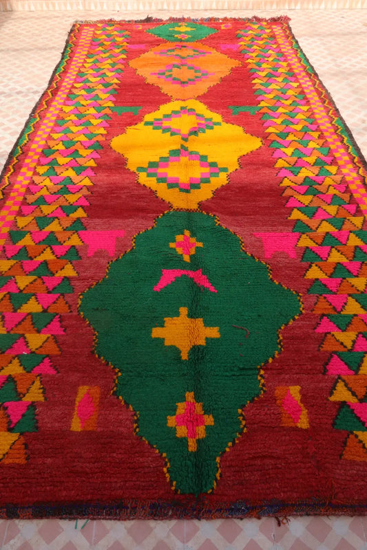 Tapis Berbère boucherouite Rouge à Motifs Colorés - 305 x 118 cm