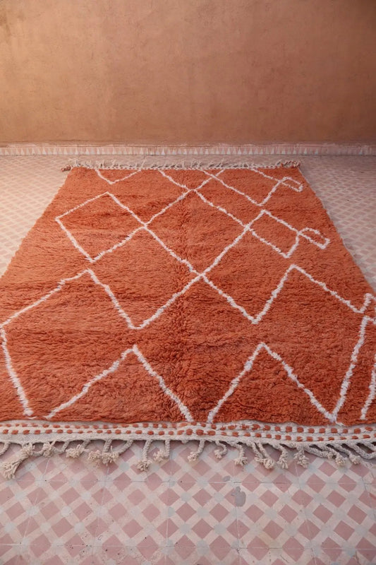 Tapis Berbère Coloré Terracotta et Blanc Béni Ouarain- 288 x 195 cm