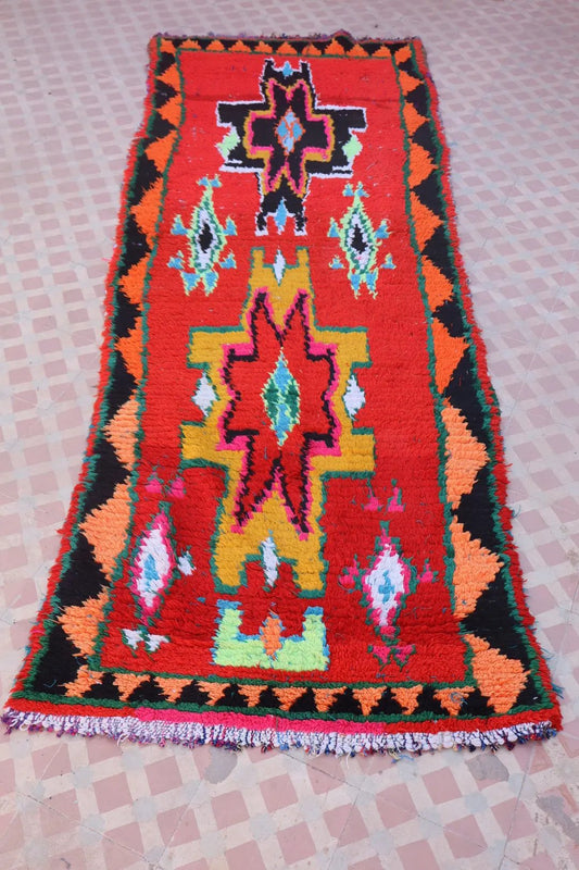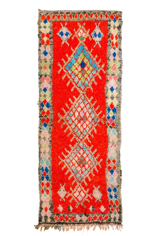 Tapis Berbère Azilal Vintage de Couloir Coloré Rouge Multicolore - 226 x 77 cm