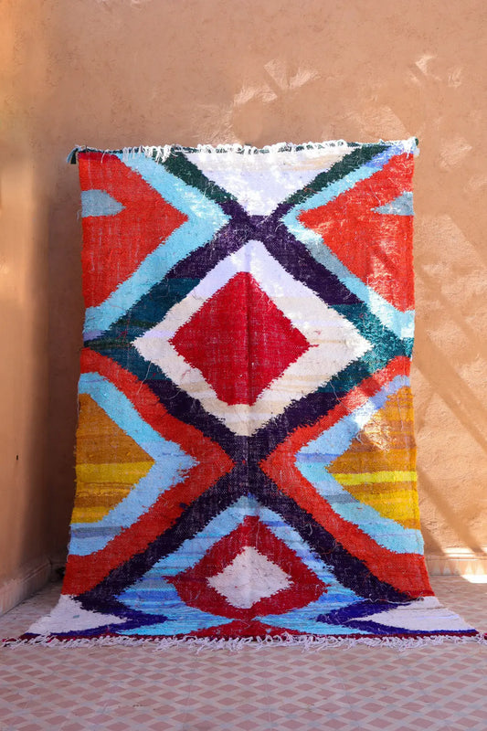 Tapis Berbère Coloré Kilim Boucherouite Multicolore Seventies - 243 x 150 cm