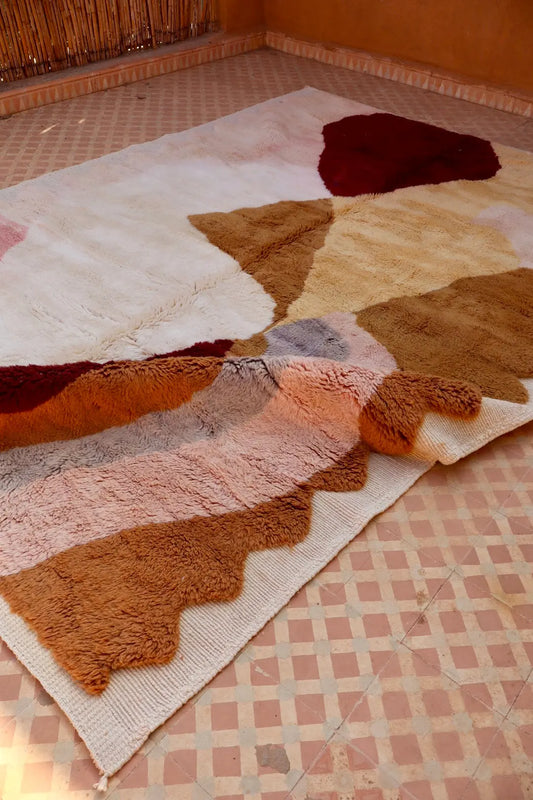 Tapis Berbère Mrirt Coloré Moderne Terracotta Motifs Reliefs - 247 x 150 cm