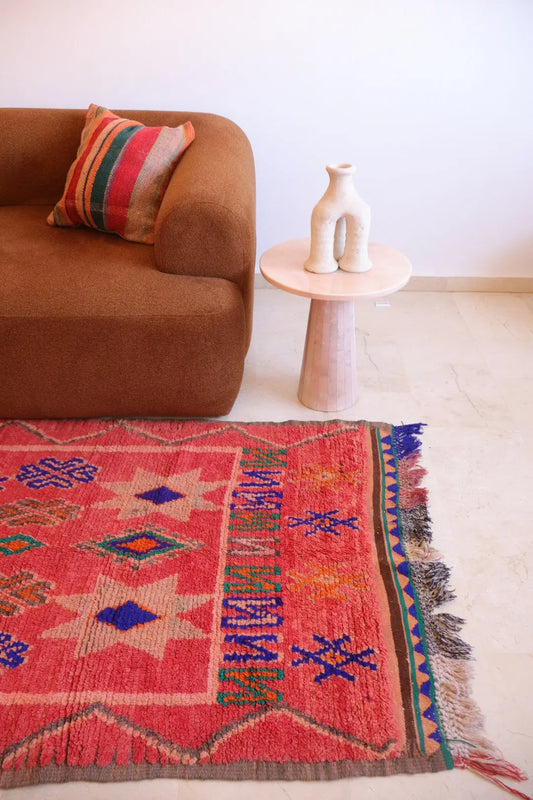 Tapis Berbère Coloré Contemporain Marron & Rose Qualité Supérieure - 260 x 155 cm