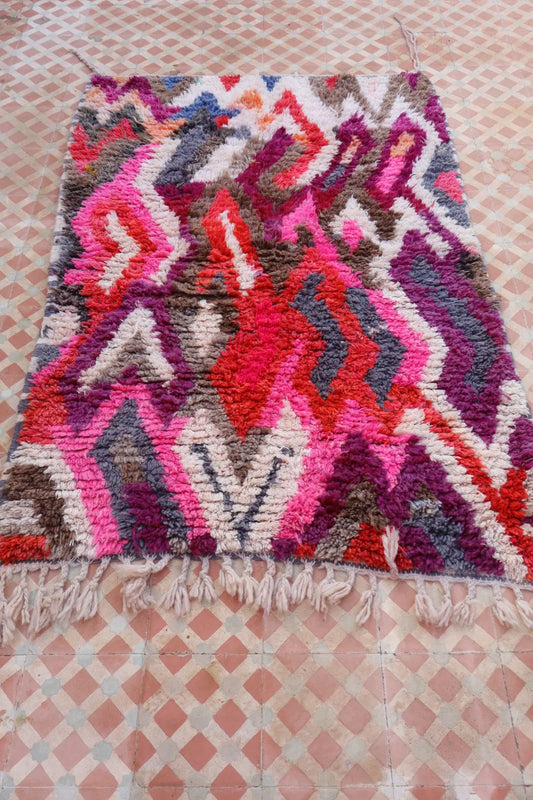 Tapis Berbère Boujad Coloré Violet Rose Rouge - 105 × 160 cm