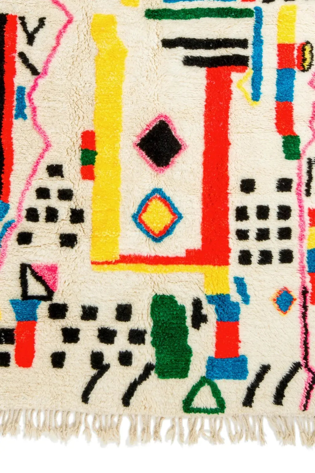 Teppich Azilal - weißer Berberteppich mit bunten Motiven