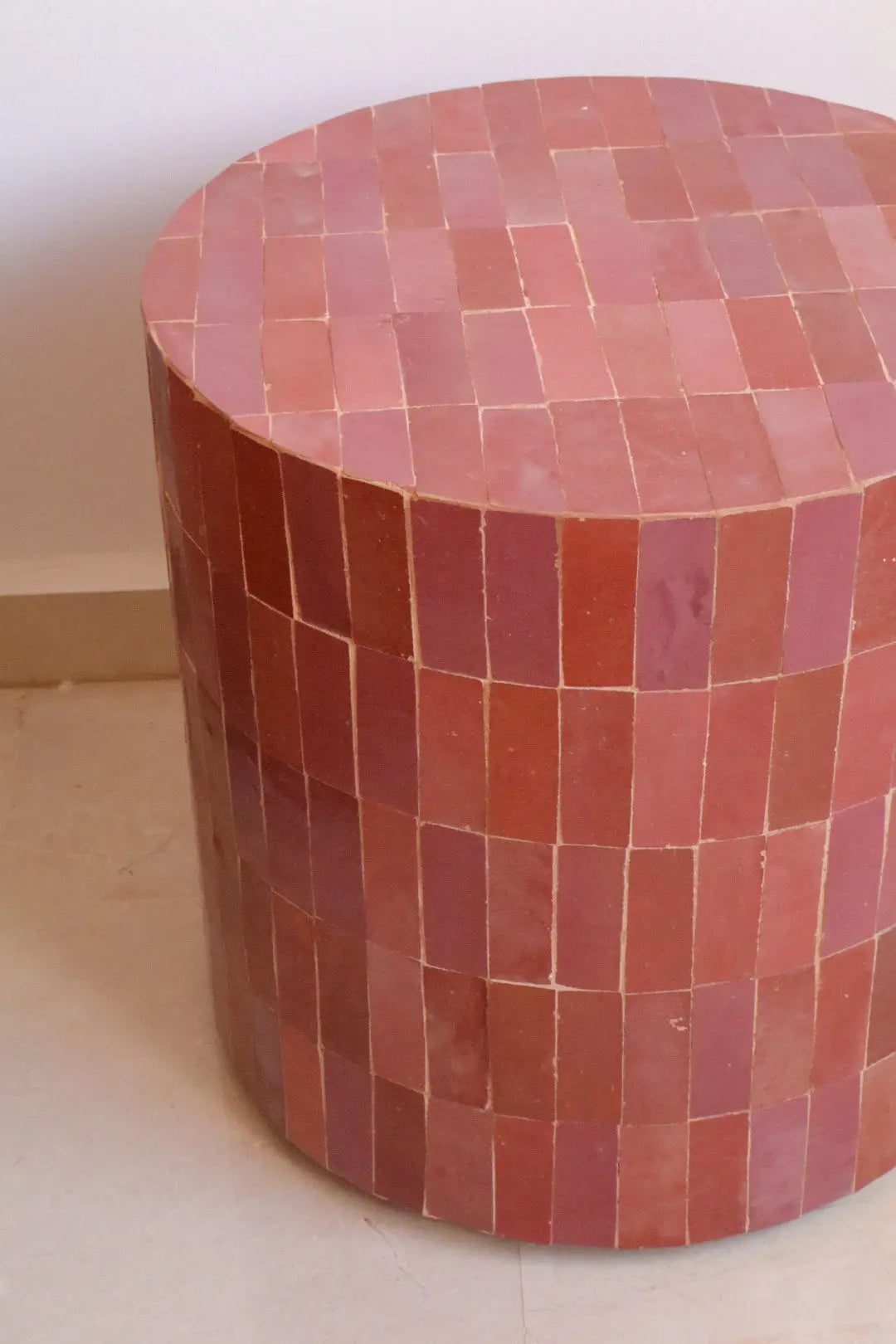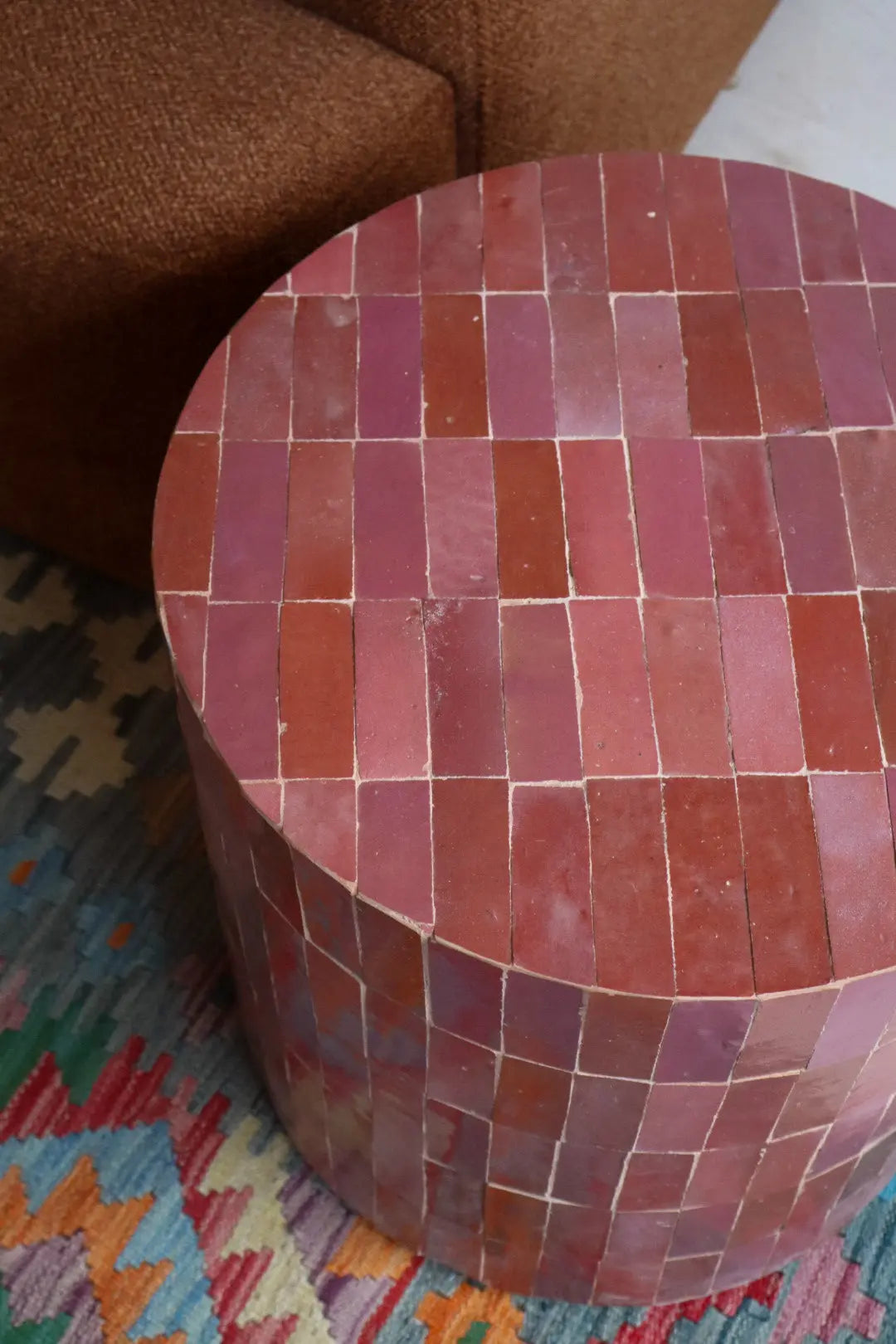 Moderne runde Beistelltischsäule in dunklem rosa Zellige DIME