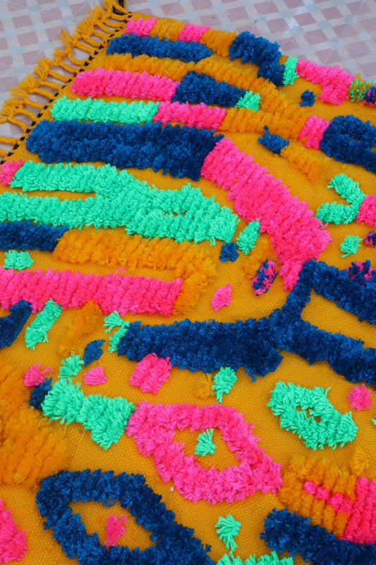 Bunter Berberteppich Gelb Senf mit fluoreszierenden Mustern - 190 x 142 cm