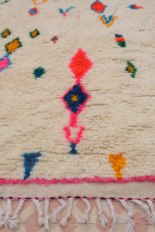 Colorful Berber Rug White Multicolored Patterns Pink Edges - Azilal