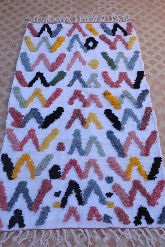 Alfombra Bereber Boucherouite Colorida Geométrica – Algodón reciclado y lavable - 165 x 93 cm