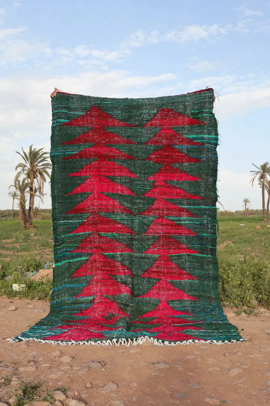 Alfombra Bereber Colorida Kilim Boucherouite Verde Abeto y Burdeos - 248 x 145 cm