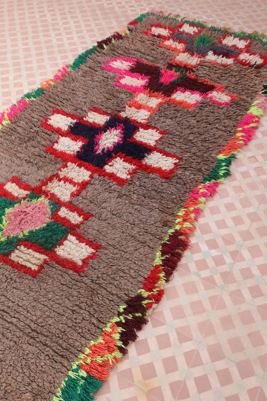 Alfombra Bereber Azilal Marrón Motivos Coloridos Fluo - 273 x 110 cm