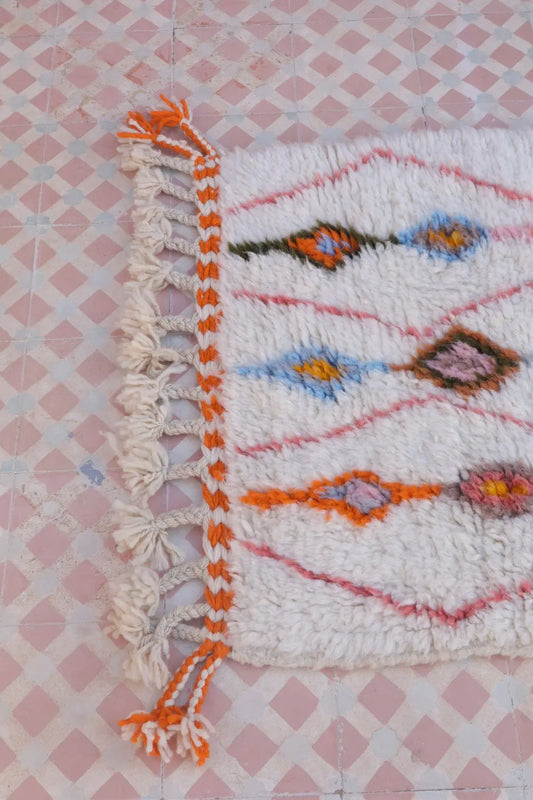 Tapis Berbère Azilal Blanc Motifs Losanges Colorés et Fluo- 152 x 102 cm
