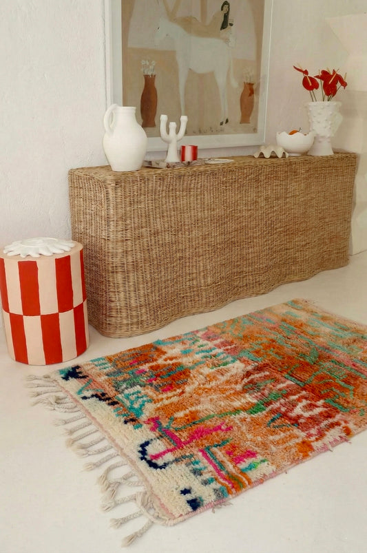 alfombra bereber Boujad Colorido Terracota Naranja Verde - 151 x 110 cm