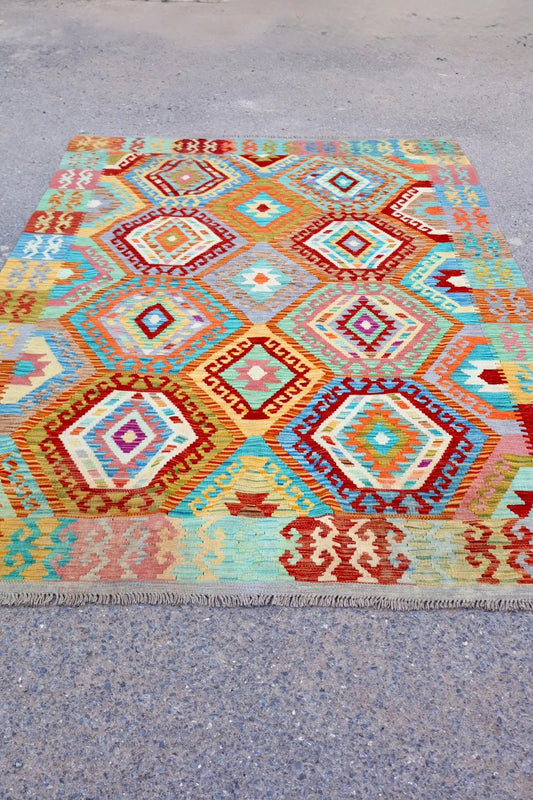 Alfombra Kilim Afgana Tradicional Multicolor - 249 x 170 cm