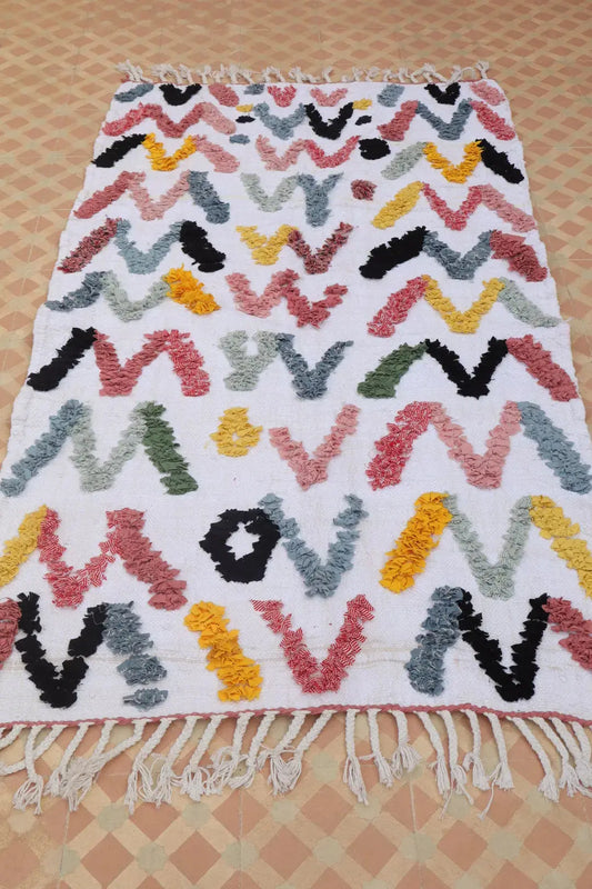 Tappeto Berbero Boucherouite Colorato – Cotone riciclato e lavabile - 68 x 107 cm