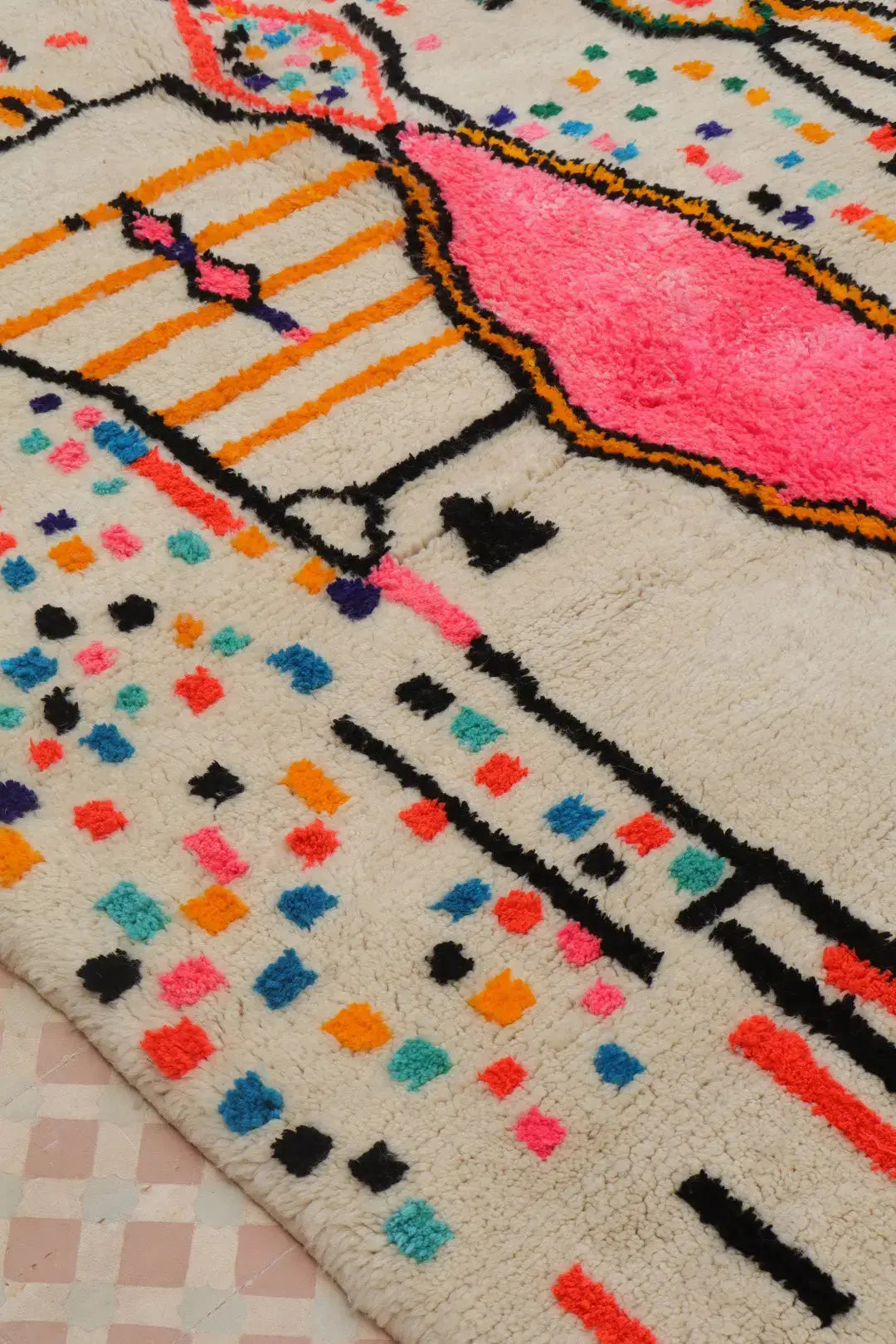 Berber tapijt Azilal gebroken wit met veelkleurige en fluorescerende roze motieven